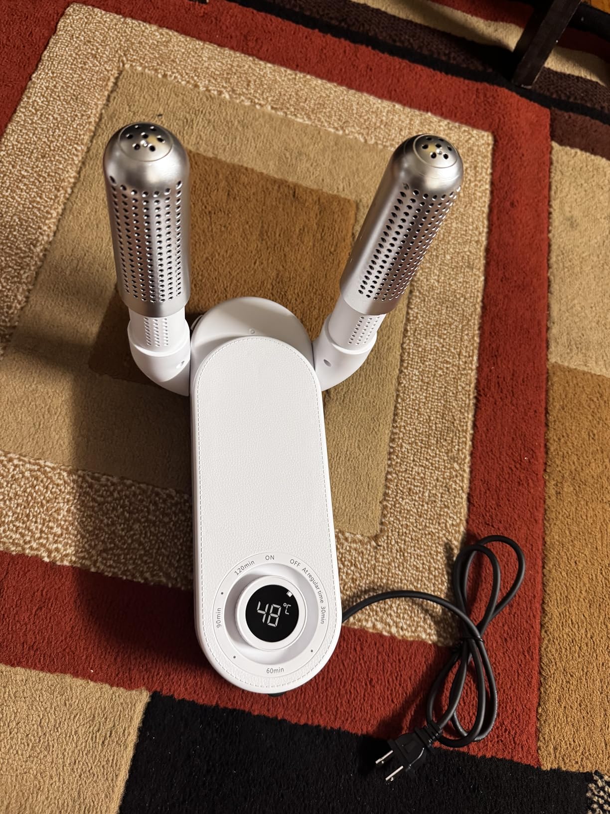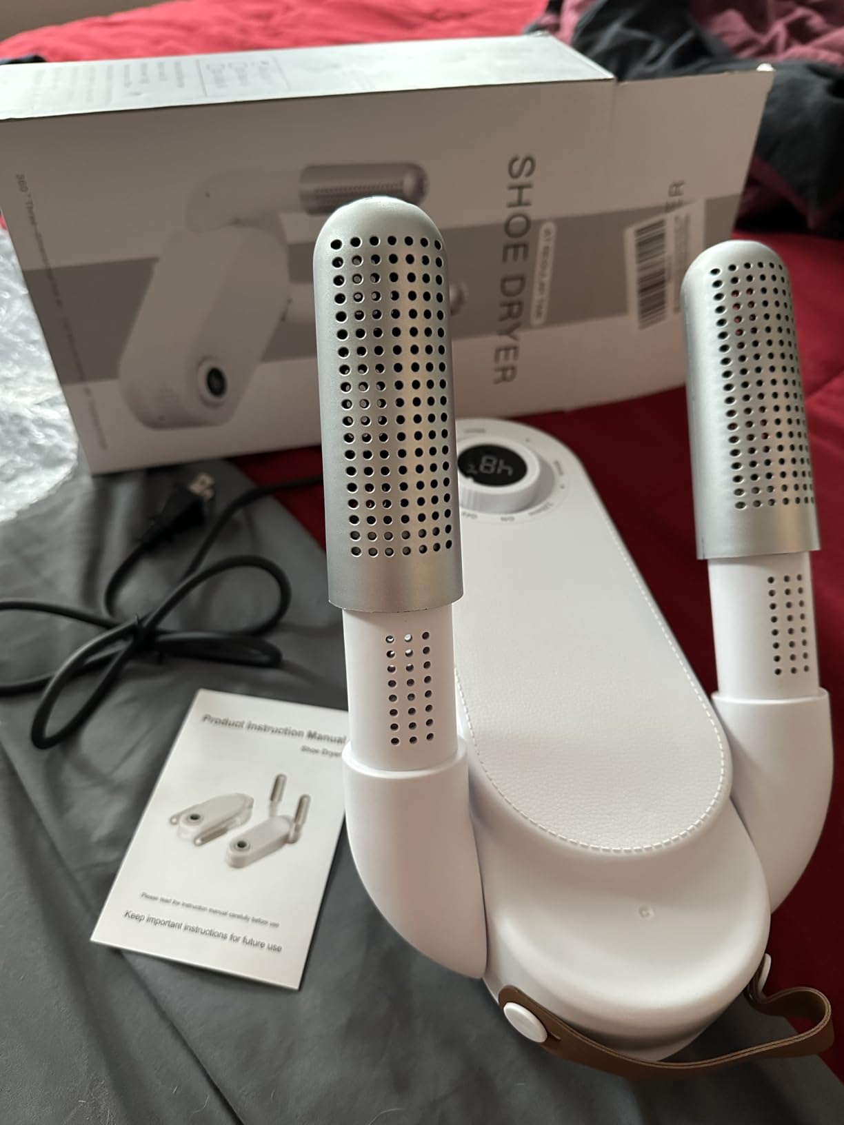 This Shoe Dryer is fantastic! It worked perfectly right out of the box. I even tested it by pouring a cup of water into my shoe, and it dried it impressively fast. The 360° heat blower really does the job, and the different timer settings are convenient. Great for shoes, gloves, and more. The folding and hanging design also makes it easy to store. Highly recommend!